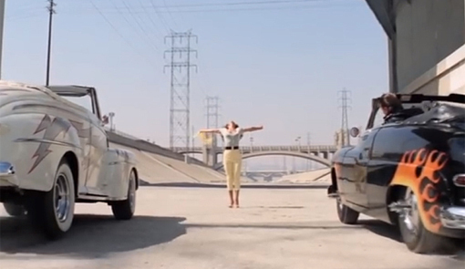 Escena de la carrera de coche ilegal de la película Grease (1978)