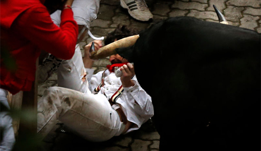 R.- He corrido 100 encierros y en dos de ellos, los toros han matado a alguien. En unas diez carreras hubo gente que tuvo mucha suerte y se salvó de milagro. La atención médica es muy buena en Pamplona, si no lo fuera moriría mucha más gente. 16 personas murieron corriendo con los toros el año pasado. La gente piensa que es sólo un poco de diversión y en realidad no lo es. Es una cosa terriblemente peligrosa, como intentar escalar el Everest. La gente lo hace cada año, pero si algo va mal pueden morir allí muy fácilmente. Lo mismo ocurre en Pamplona. Un toro puede matar en una fracción de segundo. Correr encierros es una cosa muy drástica y no debe hacerse a menos que se esté dispuesto a morir.