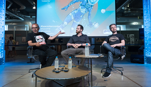 Arturo González-Campos, Joe Abercrombie y Juan Gómez-Jurado. Foto: Javier Arias