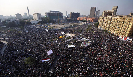 Vista aérea de las protestas en la Plaza Tahrir durante 2011
