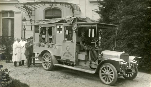 Ambulancia donada por Alfonso XIII al Hospital Español de San Fernando en París, h. 1916. Patrimonio Nacional. Madrid, Real Biblioteca.