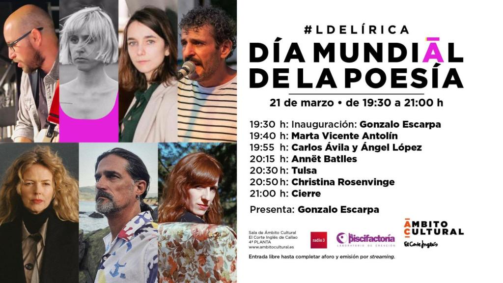 Descubrir la belleza de la poesía en un entorno único. Esto es lo que se ha propuesto el poeta Gonzalo Escarpa, coordinador del ciclo #LdeLírica de Ámbito Cultural, para festejar este año el Día Mundial de la Poesía, que se celebra este viernes 21.