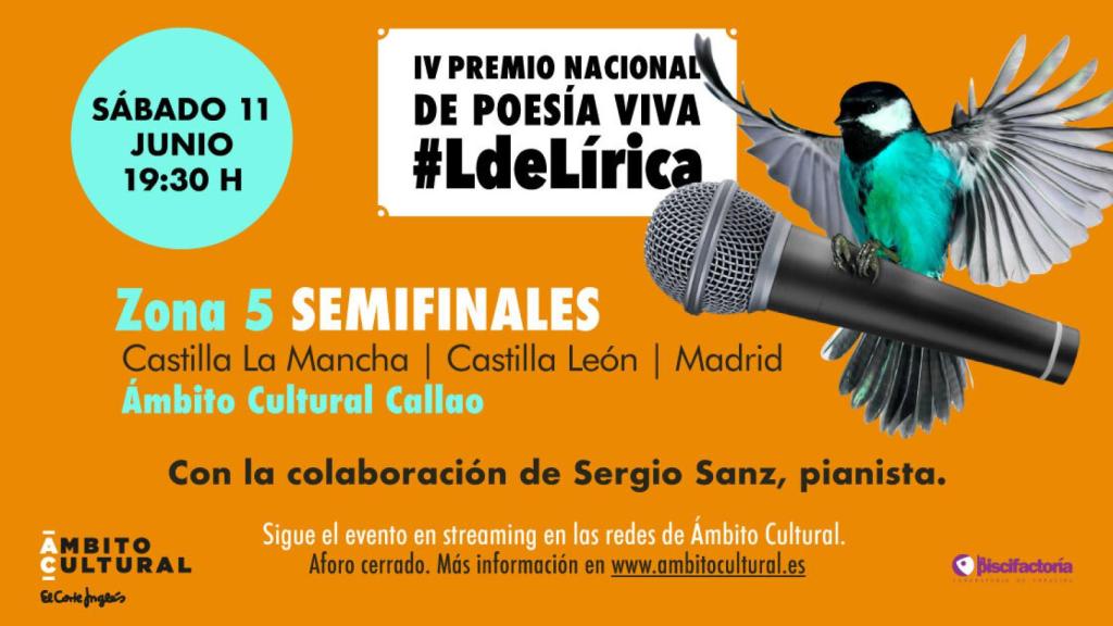 Comienzan este fin de semana las semifinales del IV Premio Nacional de Poesía Viva #LdeLírica que organiza Ámbito Cultural. En ellas participarán 54 autores repartidos en las seis zonas geográficas delimitadas por el concurso organizado por Ámbito Cultural. Tras su primera clasificación en la fase de Instagram, ahora les toca exprimir su faceta creativa al máximo y volver a conquistar al jurado, esta vez, sobre el escenario.