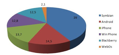nada más que empezar. La lucha fratricida en la que están inmersos los grandes fabricantes se sigue dirimiendo, y aunque Nokia continua liderando férreamente el ranking, el joven pero prometedor Android empieza a preocupar al gigante finlandés y a Apple, que ven cómo un sistema hasta hace 2 años inexistente se va comiendo cuota de mercado a pasos agigantados.