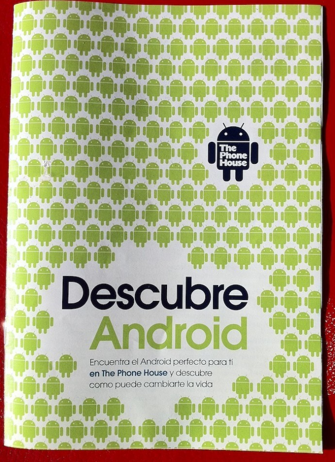 Todo esto viene a raíz, o estalla mejor dicho (porque ya hay antecedentes) por un folleto que acaba de sacar The Phone House sobre Android, tamaño cuartilla y que distribuyen en sus tiendas. Descubre Android se hace llamar y nada más abrir la primera página encuentras la primera y desagradable sorpresa, pro antes de seguir, hablemos del porqué hacen esto.