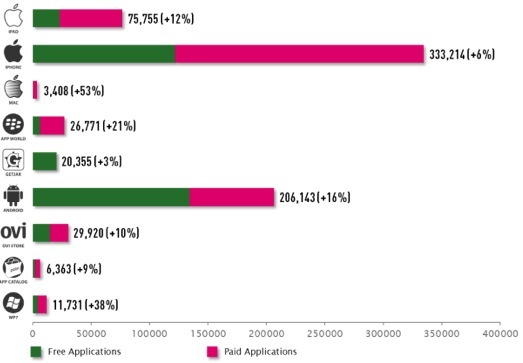 Hace unos días salió un informe, republicado por algunas webs donde se informaba que en el Android market, por primera vez, había más aplicaciones gratuitas que para iPhone, sin que de momento el montante total (de pago y gratis) llegue a superar a las que hay disponible para iOS.