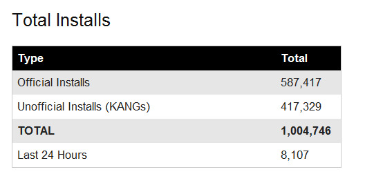 Ayer fue un día importante para la Scene de developers Android y el mundo de las custom ROMS en Android. En primer lugar, la ROM más popular para Android, CyanogenMod, llegó a la cifra de 1 millón de instalaciones tal y como se puede ver en su página de estadísticas, una cifra nada despreciable.