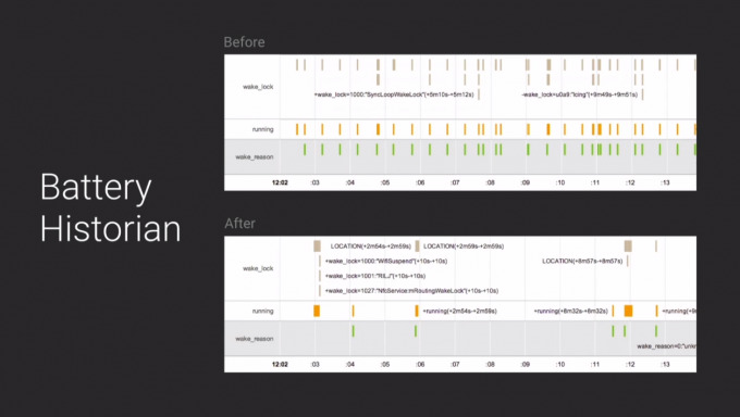Pero en realidad Project Volta no es mas que un nombre para albergar unas cuantas características que ayudan a que Android consuma menos batería. Tenemos como ejemplo el Battery Historian, una herramienta que nos ayuda a comprender el verdadero gasto de batería y que nos permite actuar en consecuencia.