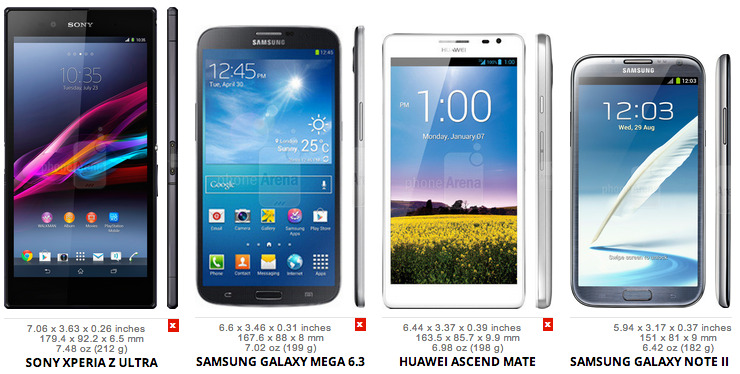 El LG G3 o el OnePlus One con sus pantallas de 5,5″ son extremadamente grandes en comparación con los Nexus originales pero siguen siendo pequeños respecto a algunos modelos presentados este año como el Xperia Z Ultra, que sigue siendo un perfecto ejemplo de phablet.