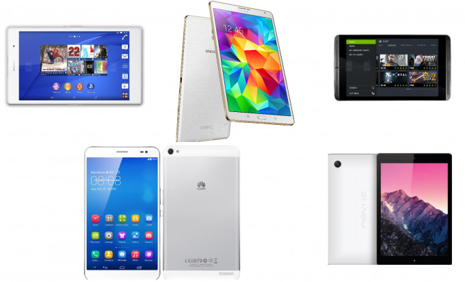 | Lenovo Yoga 2 8'' | Sony Xperia Z3 Tablet Compact | Lenovo Tab S8-50 | Samsung Galaxy Tab S 8.4 | Huawei MediaPad X1 | ntis 8 (supuesta Nexus 9) | Nvidia SHIELD | Samsung Galaxy Tab Active | Asus Memo Pad 8 | Xiaomi MiPad | Alcatel OneTouch PIXI 7 | Acer Iconia One 7 | LG G Pad 8.0 | |