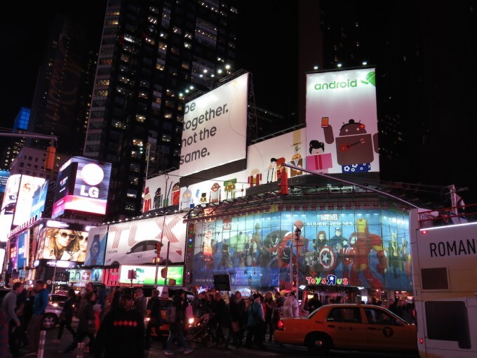 La campaña no sólo se limita al corazón de Manhattan, sino que prácticamente se ha forrado la ciudad que nunca duerme con anuncios del sistema operativo. La campaña usa como eslogan «be together. Not the same» (Estad juntos. No seáis lo mismo) y pivota sobre los muñecos de Androidfy, una aplicación semiolvidada que se ha actualizado recientemente.