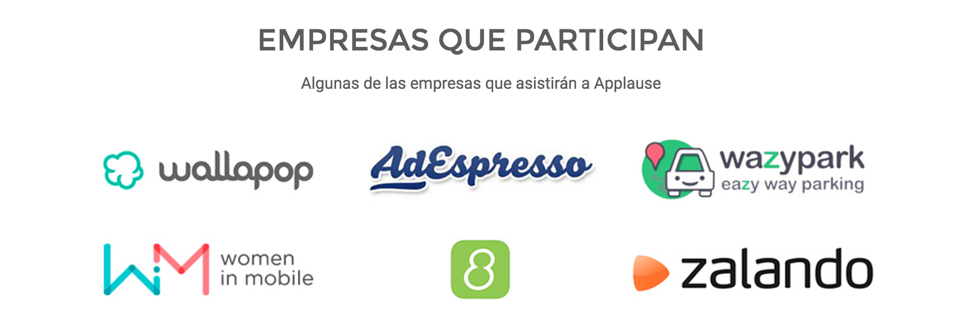 Entre los ponentes confirmado Applause contará con Víctor Momparler (Wazypark), Caroline Ragot y Dominique Cerri (Infojobs), Irene Noriega (Zalando), Guy Uziely (Appsflyer), Antonio Calero (AdEspresso), Marissa Aydlett (Appboy), Thomas Petit (8fit), Gemma Escribano (Wallapop) e Ignasi Prat (Appodeal).