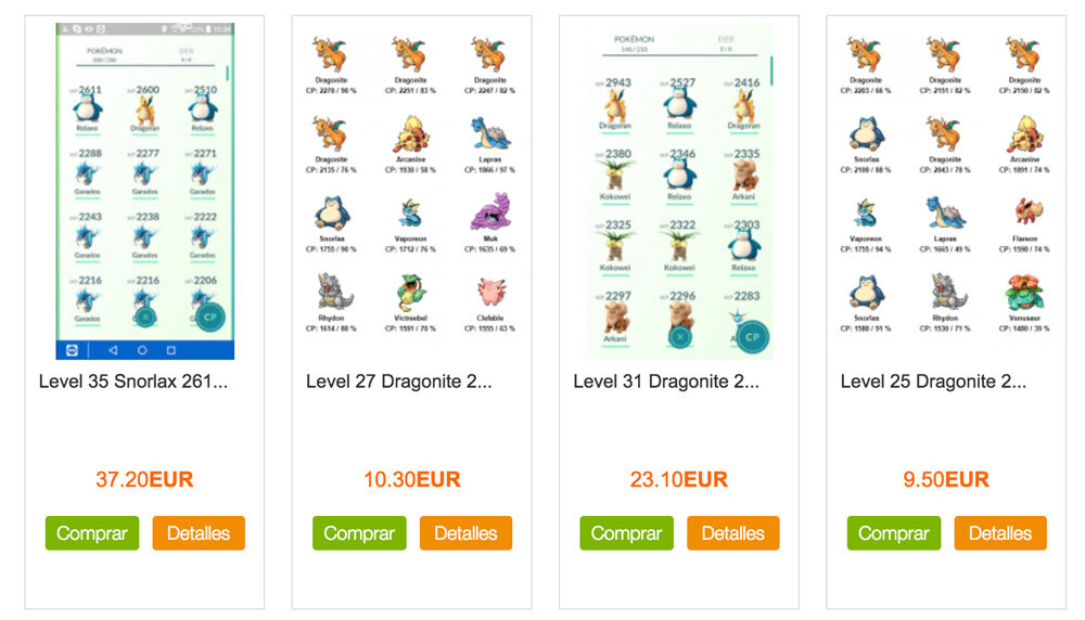 Se venden cuentas con niveles de 20 en adelante (he visto muchas de 35), con colecciones de Pokémon poco habituales y hasta arriba de polvoestelar. ¿Precios? Por unos 15 euros puedes tener una cuenta de Pokémon GO de las que dan envidia.