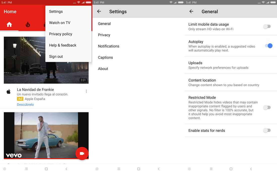 También es aconsejable filtrar el contenido que hay disponible en Youtube para lo cual hemos de activar la opción en la aplicación. Hemos de ir a:
