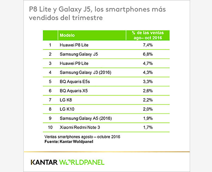 No son Samsung Galaxy S7, ni iPhone, ni Sony Xperia top: los 7 móviles más vendidos entre agosto y octubre en España corresponden a la gama media/baja. Y hay una excepción que confirma otra de las tendencias que hemos visto crecer exponencialmente desde principios de 2015: los móviles chinos.