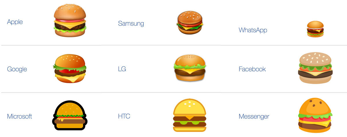 No creo que nadie se fije en los emoji que trae un móvil para decantarse por él o no, pero sí es cierto que los desarrolladores y fabricantes dedican tiempo y dinero para hacer sus propios diseños con los que encandilar a sus futuros dueños. Una hamburguesa lo parecerá siempre, pero no resultará igual de apetitosa en un móvil que en otro.