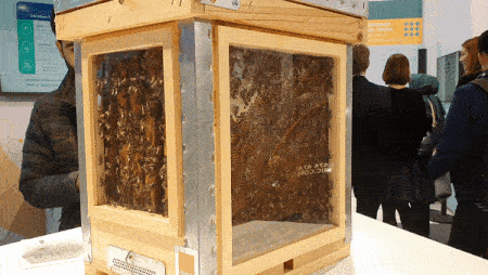 Esto es de lo más raro que he visto, también lo más perturbador. Porque, ¿qué necesidad hay de tener a unos seres vivos encerrados solo para llamar la atención hacia un stand? El gancho es poder controlar cualquier objeto con el 5G, hasta los sensores de una explotación de abejas. Y no bastaba con poner una pantalla demostrativa, claro.