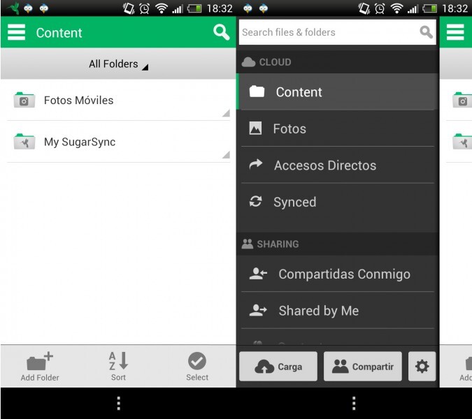 SugarSync nos ofrece realmente un buen servicio. Fácil de sincronizar en el ordenador mediante un programa, o bien directamente desde la web. Y su punto fuerte es que dispone de aplicación Android. La aplicación funciona bastante bien, pero ha decir verdad no es para tirar cohetes. Resulta un pelín liosa ya que da muchas opciones de visualización pero es rápida y funciona bien. En conjunto es una buena opción pero personalmente os recomiendo la siguiente. Recordad que ya lo analizamos.