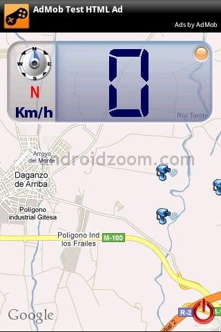 s (de hecho recomiendo actualizarla cada vez que se vaya a hacer un viaje).  En la pantalla principal te muestra un mapa con tu ubicación y la velocidad a la que vas (te lo pone transparente para que no moleste al mapa) y si te acercas a un radar te informa mediante voz la velocidad límite, además de vibrar (muy útil para los motoristas) y mostrártelo por pantalla.