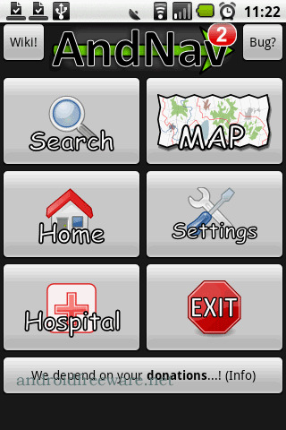 2. AndNav2 esta aplicación si es un navegador GPS como nosotros entendemos, con indicaciones con voz, POIs e indicaciones punto a punto. Lo bueno, que es gratuito con muchas opciones, lo malo que tiene una interfaz muy liosa y difícil de entender y además no encuentra bien las direcciones. Cuando lo he estado probando con multiples direcciones no me encontraba ninguna, mal empezamos. Esperamos que pronto lo mejoren porque la verdad, tiene muy buena pinta.