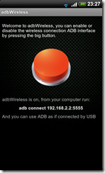 adbWireless nos permitirá acceder a otra de las maneras de conectar tu teléfono al adb: mediante wifi. Tan sencillo como activar la wifi y pulsar sobre el botón conectar.