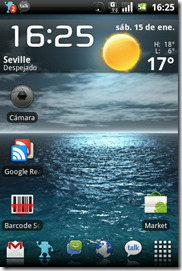 Con otros launchers siempre tenía desactivada las opciones de transiciones y demás y aún así, cuando cambiabas de una a otra pantalla el rebote producido iba lento, sin embargo con este launcher va muy fluido cosa que no me esperaba para nada. Como tampoco me esperaba que si pulsas dos veces sobre en el launcher saliera la previsualización de todos los escritorios con animaciones y no se quedara atascada, probablemente los poseedores de un Nexus One, o similares, no se sorprenderán pero yo estoy muy orgulloso de mi HTC Magic (le he cogido cariño).