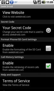 se une a esta lista haciendo incapié en la sencillez de su uso. Y es que una vez instalada la aplicación y seleccionado un nombre de usuario y el código secreto no tendremos más que dirigirnos a https://www.seekdroid.com/ para poder manejar la seguridad de nuestro teléfono de forma remota.