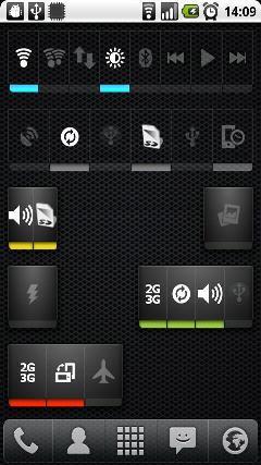 Puedes crear barras con los botones más útiles según las circunstancias de cada uno, por ejemplo una barra con 4 botones para encender la linterna, apagar el 3G, silenciar el teléfono, y ponerlo en modo avión.