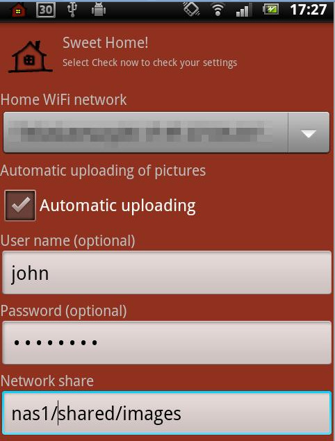 Si hemos tomado fotos conectados a la red WiFi y queremos sincronizar, tenemos el segundo botón más importante de la aplicación, «Upload now», con el que sincronizamos de manera manual. Como os dijimos, fácil y muy sencillo. La aplicación se complementa con Documentación para tener más información del programa (es especialmente útil la de nombrar la carpeta, que puede ser lo más complicado del programa) y un botón para recomendar la aplicación.
