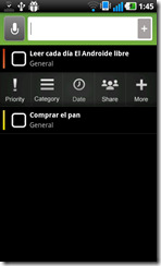 Cuando completas una tarea, basta con deslizar un dedo “tachándola” o bien, seleccionando la casilla de la izquierda. A continuación y para quedarte con todos, agita el teléfono cual coctelera para limpiar todas las tareas completadas. Por supuesto, podremos encontrar todas las características típicas de la gestión de tareas: prioridades, categorías, fechas, recordatorios, comentarios, etc.