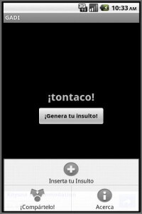Y empezamos con las apps chorras (¿no os dije que íbamos a ser imprevisibles?), y empezamos con GADI, Generador Aleatorio de Improperios, una muuuuuy util aplicación que nos dará un insulto al azar. Podemos marcarlos para que no vuelvan a aparecer (próximamente…), o simplemente añadir los nuestros propios (Carapán, Vacaburra, o el nombre de un amigo idiota que tengas…) La aplicación es gratuita (a pesar de que muchos de nosotros pagaríamos muchísimo…), y esta disponible en el Android Market, ya podremos instruirnos en el noble arte de insultar…