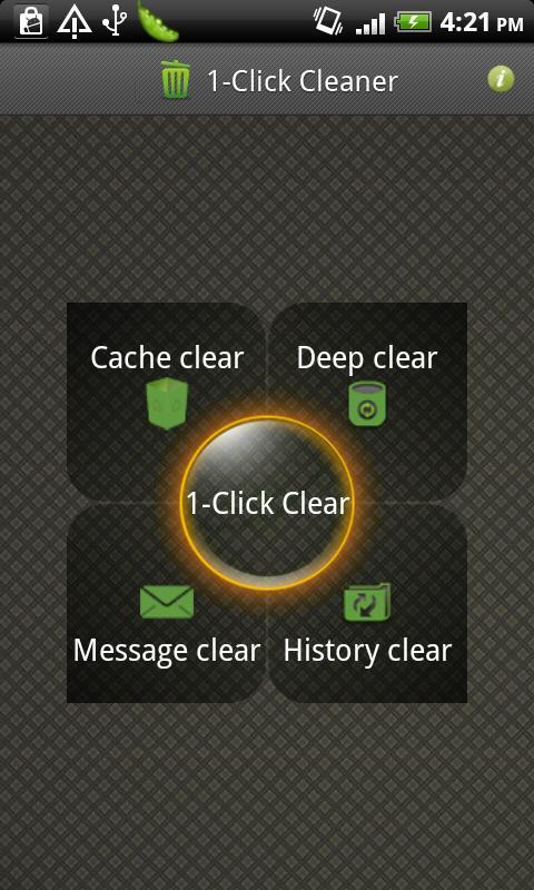 Por último tenemos la reina. En el centro de las 4 opciones tenemos un gran círculo. Si lo pulsamos para probar qué hace nos cagaremos de la rabia encontraremos en un callejón sin salida, ya que solo nos dejará decir «Ok» o «No vuelvas a preguntar». Y es que este círculo hace lo que las anteriores 4 opciones juntas. Limpia todos los datos inútiles de nuestro teléfono. Bueno, realmente no lo borra todo. Las opciones de mensajes y historial las deja intactas, y la de limpieza profunda no la vacía del todo. Pero aun así, es el botón principal de la aplicación, y servirá para un lavado rápido de vez en cuando, dejando el criterio a la propia aplicación.