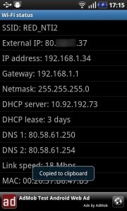 Respecto a la conectividad te muestra el estado de la red Wi-Fi, la puerta de enlace y las IP’s tanto interna como externa.