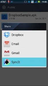SyncIt es una aplicación en principio similar a otras que ya hemos analizado como Titanium Backup, que hacen uso de Dropbox para automatizar la sincronización de archivos desde nuestro terminal Android hacia nuestro espacio de almacenamiento en la nube. Sin embargo hasta ahora el uso de Dropbox desde nuestros móviles se basaba en ir subiendo archivos a mano, o en el caso de los automatizadores como el mencionado, el que la aplicación cada cierto tiempo vigilara una carpeta, archivo, etc y lo sincronizara. O en otros casos que las fotos que realicemos se suban automaticamente. Pero ¿qué pasa si queremos guardar una copia de un archivo actualizado en concreto en el mismo momento de guardarlo?.