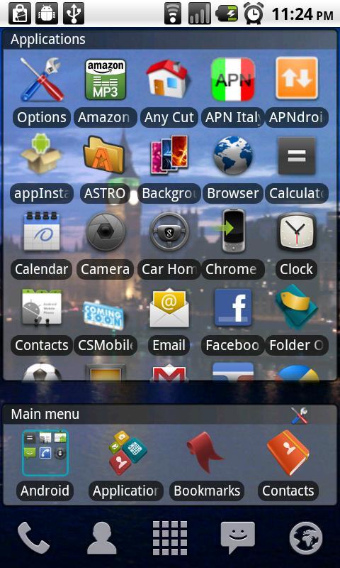 Cuando instalemos esta aplicación nos realizara un scans de todas las aplicaciones que tengamos instaladas en el teléfono, así como marcadores y contactos asociados a nuestra cuenta de correo, organizados por grupos (tardará un poco, no os preocupéis). Una vez acabado, tan sólo tenemos que dedicar algo de tiempo a crear grupos, a quitar otros que nos haya creado la aplicación por defecto y una vez hayamos organizado todo, sólo tenemos que poner un widget en escritorio (uno o los que queramos) en el que podremos elegir qué categoría queremos que nos muestre.