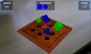 Empezamos con el juego de realidad aumentada: AR Blitz, en el que tenemos que imprimir una «marca» y enseñarsela al movil cuando la aplicación esté activa. Cuando la cámara detecta la marca, crea un tablero del que salen figuras geométricas. Tenemos que fijar con la mira las figuras y pulsar en la pantalla para destruirlas. El juego requiere mucho procesador, asi que, desgraciadamente, dispositivos como el HTC Hero no funcionarán. El juego es gratuito y está disponible en el Android Market