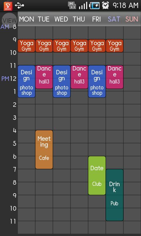 En cada evento podremos seleccionar los días en que se repite, las horas, asignarle un color, y ponerle nombre y lugar. Así iremos llenando nuestro primer horario. Posteriormente a tener cada evento creado, podremos añadir una nota a cada uno, cambiado de modo en la esquina superior izquierda. Con estas pocas opciones ya tenemos una aplicación que cumple con su cometido.