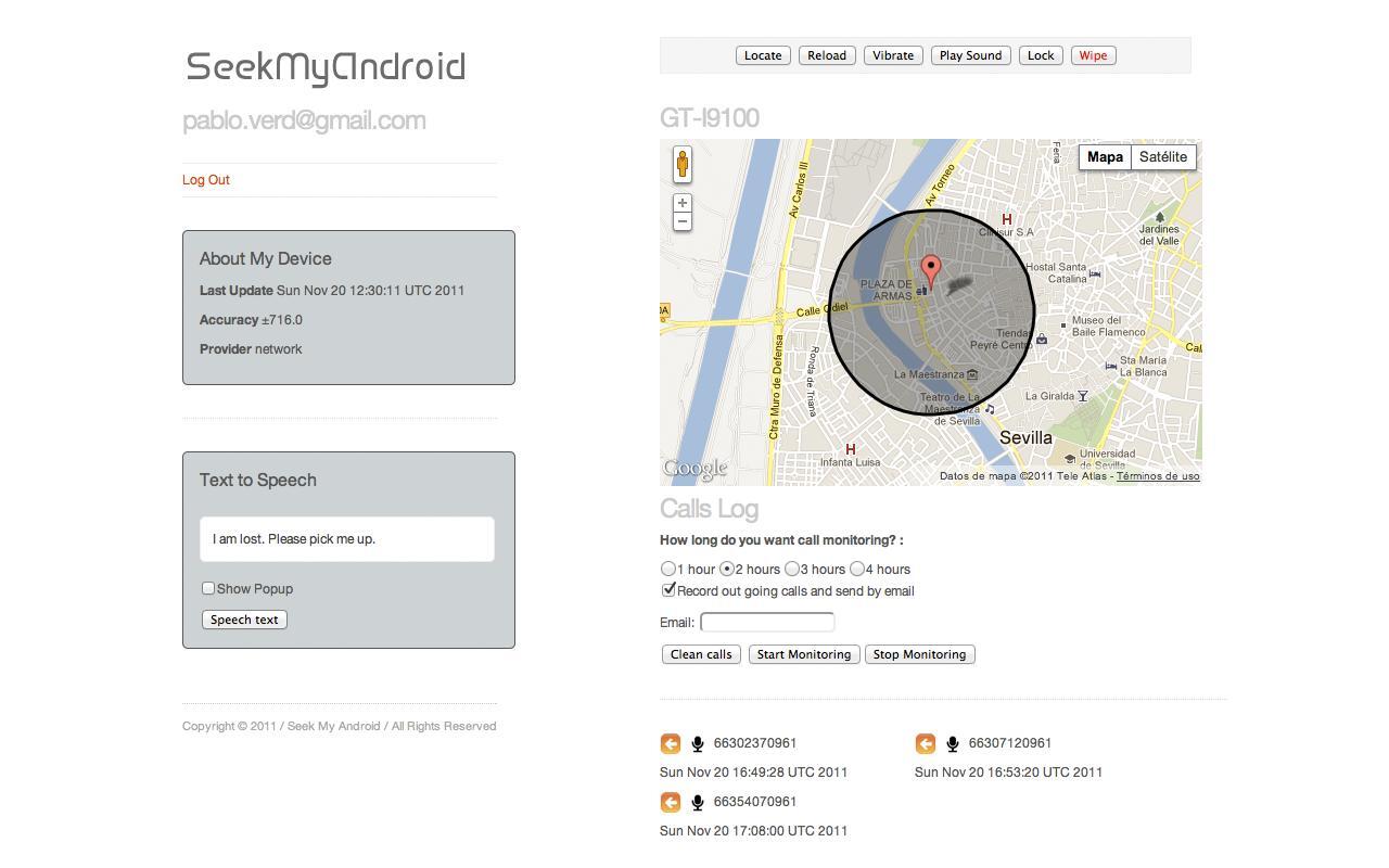 - Ver las llamadas que se hacen con nuestro móvil extraviado e incluso grabarlas y mandárnoslas por mail.