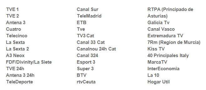 Esta aplicación de iniciativa española está diseñada para funcionar de manera rápida y sencilla. Incluye una gran lista de canales españoles gratuitos (detallados más adelante), y podremos visualizarlos todos ellos en directo.