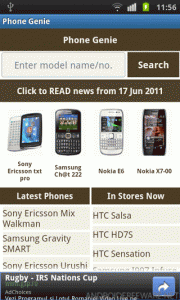 Bien, en la caja de texto se escribirá el nombre del móvil a buscar, en el panel si hacemos click en «READ news» se nos mostrará últimas noticias de la página GSMArena, en las imágenes de los móviles si tocamos algunas de ellas.