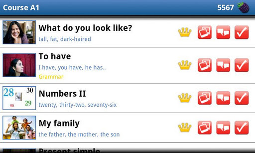 Hoy en día tenemos disponibles los siguientes idiomas para nuestro deleite: español, inglés, francés, alemán, polaco, ruso, portugues, italiano y turco. Y digo hoy en día porque se prevé una actualización en este sentido, pues en la web podemos aprender algunos más. Cada idioma tiene su aplicación, y lo mejor de todo es que son gratuitas. Pero claro, tiene su truco. Cada aplicación tiene preinstalada 20 unidades didácticas para poder avanzar, y para poder tener el resto habremos de hacer un pago in-app. Bastante lógico, no lo van a hacer por amor al arte…