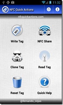 “ Simplemente decirles que con NFC Quick Actions, se pueden programar Tags para que, al leerlos, nuestro dispositivo ejecute una acción determinada sin intervención alguna del usuario. Dentro de las posibilidades que ofrece permite: