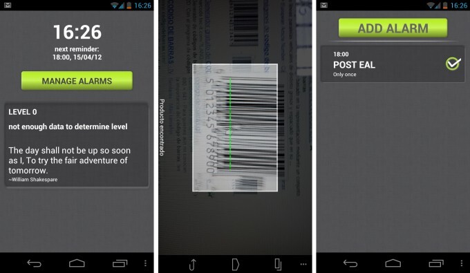 Como habéis podido apreciar, podemos insertar varios códigos de barras y así ayudarnos de camino a seguir la rutina mañanera que a veces con tanto sueño nos olvidamos de hacer algunas cosas. El intervalo de tiempo entre la petición de un código se puede modificar cuando creamos por primera vez la alarma.