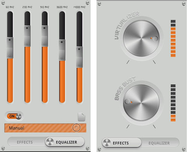 De hecho, las posibilidades de ecualización de música es lo que hace a esta aplicación diferente. Tenemos dos alternativas. La primera de ellas sería manualmente y en la que debemos ajustar los parámetros de cada banda pero, para los menos experimentados, tenemos la segunda opción que consiste en seleccionar uno de los estilos predeterminados. Además de esto tenemos varios efectos para personalizar cualquiera de nuestras pistas a los que denominan Bass Bust y Visualizer.