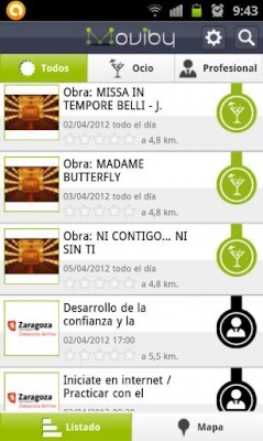 Lo de estar aburrido en casa sin saber que hacer ya no volver a ocurrir con Moviby una aplicacion disponible de forma gratuita en Google Play que nos informara de los acontecimientos disponibles en nuestra ciudad. No solo podremos ver los eventos que se están haciendo ahora mismo si no que podremos ver los que acontecerán en un par de días para podernos planificar mejor. La idea es que nos demos cuenta que por ejemplo el sábado no tenemos nada que hacer y abramos la aplicacion para buscar un evento que nos interese para ese día.