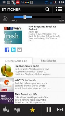 Stitcher SmartRadio es algo mas que una simple radio convencional. Podremos escuchar los últimos episodios de nuestros programas favoritos sin tener que descargar y sincronizar del ordenador. Tendremos la opción de buscar nuestras emisoras favoritas y crear un apartado solo para ellas. Stitcher SmartRadio esta completamente fusionado con las redes sociales como es el caso de Facebook y se nos sera muy fácil compartir con nuestros conocidos cualquier tipo de contenido interesante.