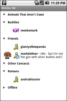 • Por otro lado tenemos Meebo IM, que es un cliente de mensajería multiprotocolo, al estilo de eBuddy, pero que además se puede ejecutar vía web en cualquier ordenador, permitiéndonos hacer uso de nuestros servicios de mensajería favoritos en cualquier lugar. Además disponemos de una aplicación para Android y para iOS que funciona bastante bien (aunque aún tiene algún errorcillo que pulir, pero vamos, si logran un resultado la mitad de bueno que en PC será impresionante).