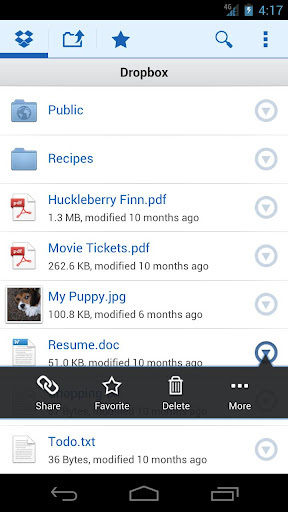 Actualmente parece que Dropbox sea una aplicación propia de Android, si consideramos que está presente en prácticamente todos los terminales y su interfaz es muy clara y encaja perfectamente.