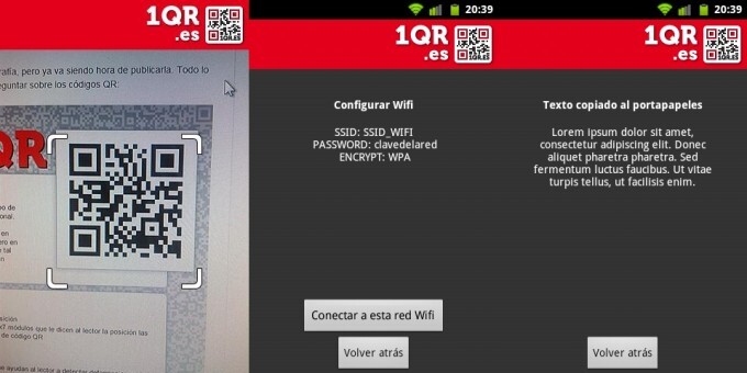 Vamos a poner un ejemplo para esto: vamos a casa de un amigo, y queremos conectarnos a su red WiFi, pero está protegida por contraseña. Entonces solo tenemos que leer un código QR con la aplicación que contiene todos los datos necesarios para conectar, y la aplicación se encargará de conectarse a la red con nuestro permiso. No tendremos que acordarnos de claves larguísimas ni de datos necesarios para la conexión.