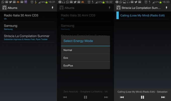 Y por último hablemos de lo que hace destacar a HoloMusic, y es su ahorro de batería. Al parecer, HoloMusic realiza una serie de ajustes internos para conseguir reducir el consumo de batería a la vez que se reproduce la música. Tenemos tres modos distintos de ahorro de batería, en función de cuanta batería queramos ahorrar. Esto hará que tus auriculares suenen durante mucho más tiempo sin necesidad de estar preocupado por la batería, algo ideal para largos viajes.